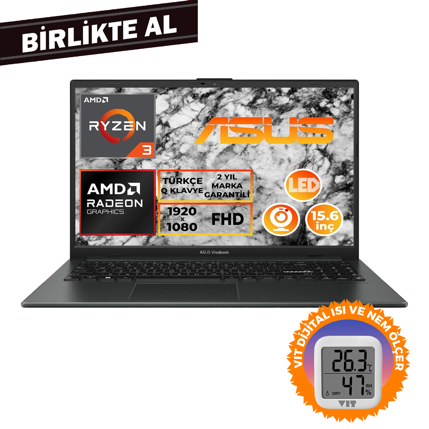 ASUS Vivobook Go 15 Ryzen 3 7320U 8GB 512GB SSD 15.6'' FHD W11P + VIT Termometre E1504FA-NJ097 025