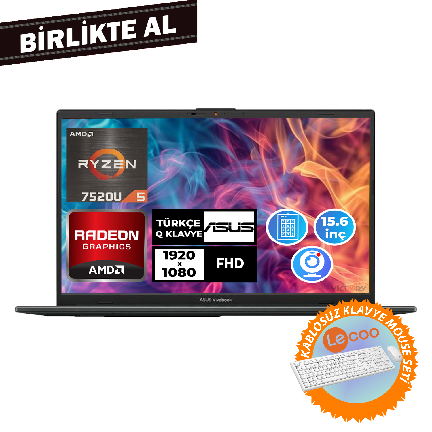 ASUS TÜRKİYE GARANTİLİDİR. ÜRÜNE TARAFIMIZCA GARANTİ KAPSAMINDA RAM-SSD YÜKSELTİLMESİ YAPILMIŞTIR. ÜRÜNE EKLENEN RAM VE SSD TARAFIMIZCA GARANTİLİ OLUP, BİLGİSAYAR ÜRETİCİ GARANTİSİNDEDİR.Bu ürünü satın alan müşterilerimize, stoklarla sınırlı olmak üzere Lecoo Kablosuz Türkçe Q Klavye Mouse Set (Beyaz) gönderilecektir. Ürünlere ait bilgi ve görseller ilgili ürün üreticisi tarafından veya internetten tedarik edilmekte olup yalnızca bilgi amaçlı olarak bu internet sitesinde yer almaktadır. İlgili üreticinin ürün bilgisi ve görselinde değişiklik yapma hakkı saklıdır. Bu bilgi ve görsellerdeki hatalardan Victory Bilgisayar Yaz Tem Gıd ve Eml Oto San Tic Ltd Şti sorumlu tutulamaz.