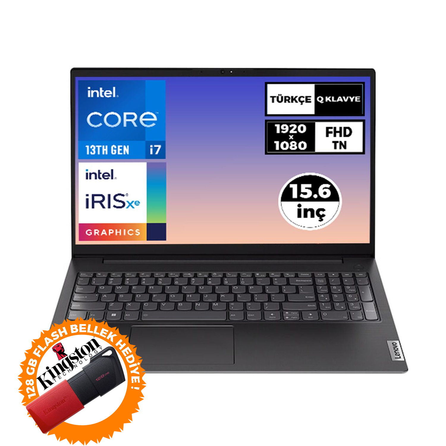 Lenovo V15 Gen 4 i7-1355U 16GB 1TB SSD 15.6'' FHD W11P Laptop + 128 GB Flash Bellek 83A100GPTR 017
