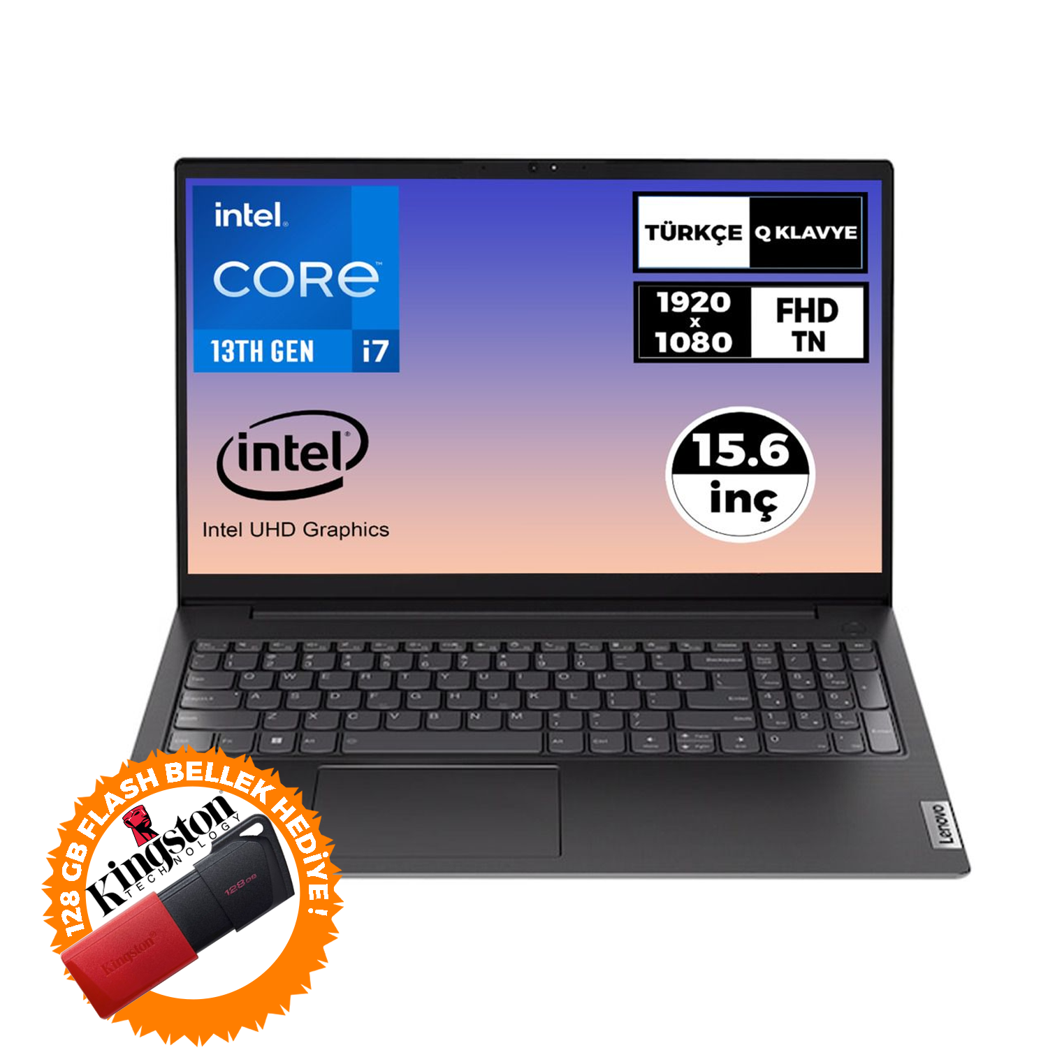 Lenovo V15 Gen 4 i7-1355U 8GB 1TB SSD 15.6'' FHD W11P Laptop + 128 GB Flash Bellek 83A100GPTR 016